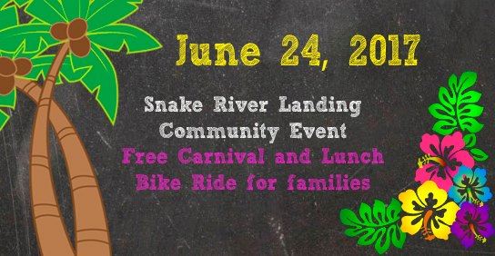 May 3, 2018 ~ Bike Month Opening Social/Safety Awareness Fundraiser at Waterfront in Snake River Landing at 6:30 p.m. to 8:30 p.m.