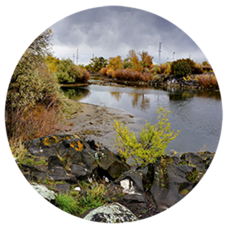 Water plays an integral role in Heritage Park with the Snake River, the water diversion stream and the surface water rain gardens.